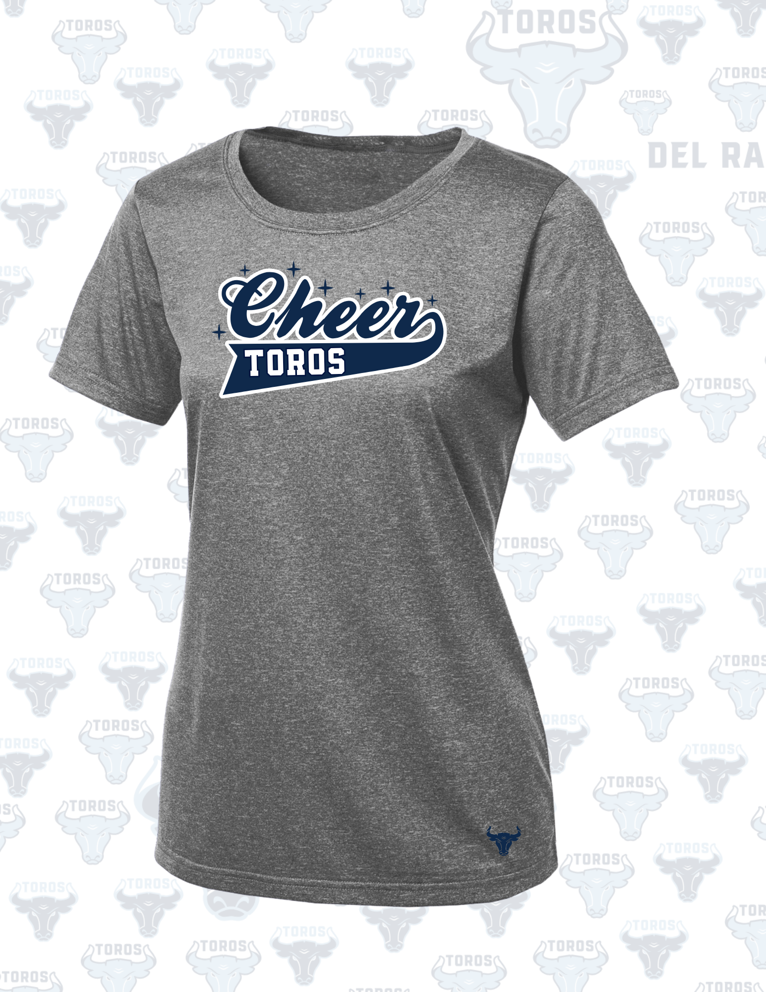Cheer loud and proud with this lightweight, performance-fit tee from the Del Rancho Toros Ladies Cheer Collection. Designed with both comfort and spirit in mind, this shirt is available in Royal Blue or Heather Gray and features a flattering ladies cut perfect for practice, events, or everyday team support.